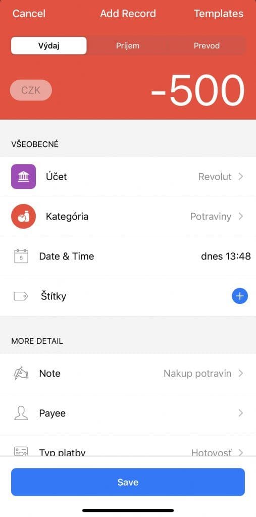 Aplikace dokáže vaše výdaje nejen monitorovat, ale je i jednoduše kategorizovat. Mezi kategoriemi naleznete potraviny, nákupy, restaurace či doprava nebo cestování.