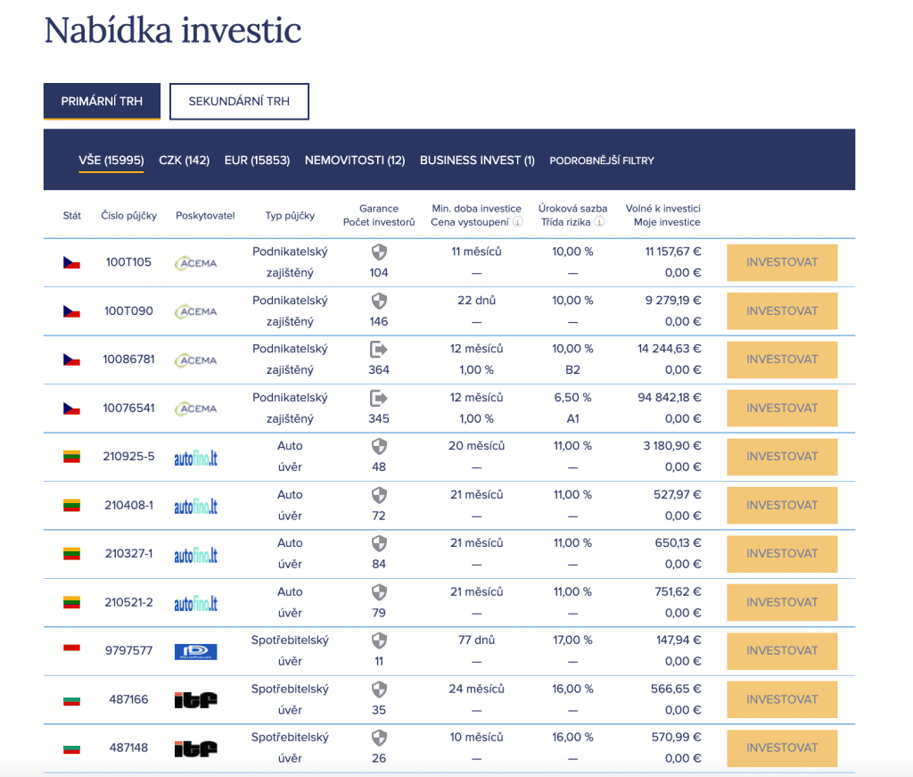Přestože tomu tak dlouho nebylo, dnes už na platformě najdeme i funkci sekundárního trhu. V případě, že svůj kapitál z investic potřebujete dříve, můžete je jednoduše nabídnout k prodeji.