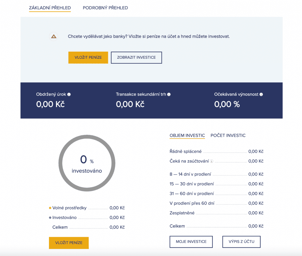 Po úspěšném vytvoření účtu obdržíte instrukce, jak si na svůj investorský účet poslat peníze. O připsání peněz na účet vás bude informovat platforma. Dále si už jen stačí vybrat z široké nabídky půjček.