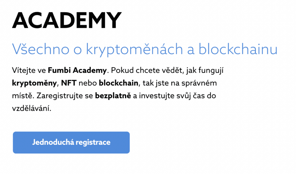Fumbi Academy je pro uživatele Fumbi bezplatná. Díky tomuto programu mají uživatelé Fumbi možnost získat všeobecný přehled a opravdu porozumět investování do kryptoměn, protože jak se říká i v základech finanční gramotnosti, vždy byste měli investovat pouze v té oblasti, které se rozumíte.