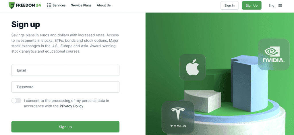 Vytvořte si účet u Freedom24Členové týmu Financera investovali přes 40 hodin do analýzy různých funkcí platformy Freedom24 a jejího testování ve sedmi zemích, kde je služba dostupná.