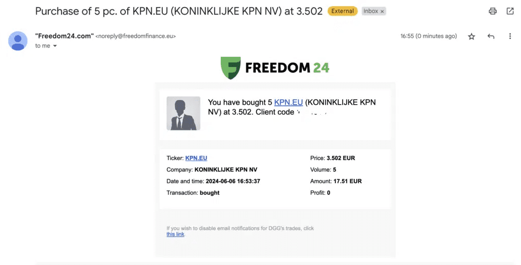To byl celý proces vytváření nového účtu Freedom24. Jsme si jisti, že přečtení toho, co máte udělat, vám zabere více času, než kolik vám zabere doba od kliknutí na odkaz pro přesměrování do dokončení prvního příkazu.