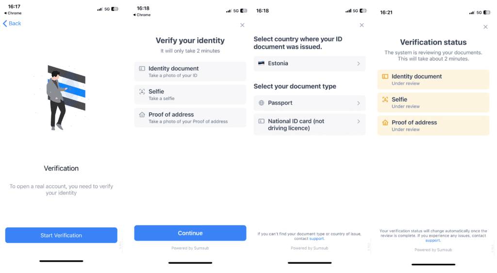 Dostali jste se k části ověřování totožnosti. Zde budete muset nahrát fotografii průkazu totožnosti, selfie a fotografii účtu za služby.